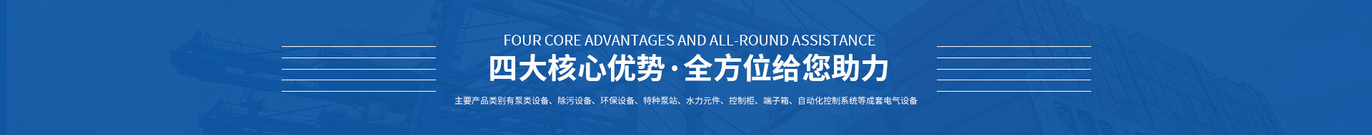 ● 主要產品類別有泵類設備、除污設備、環保設備、特種泵站、水力元件;
